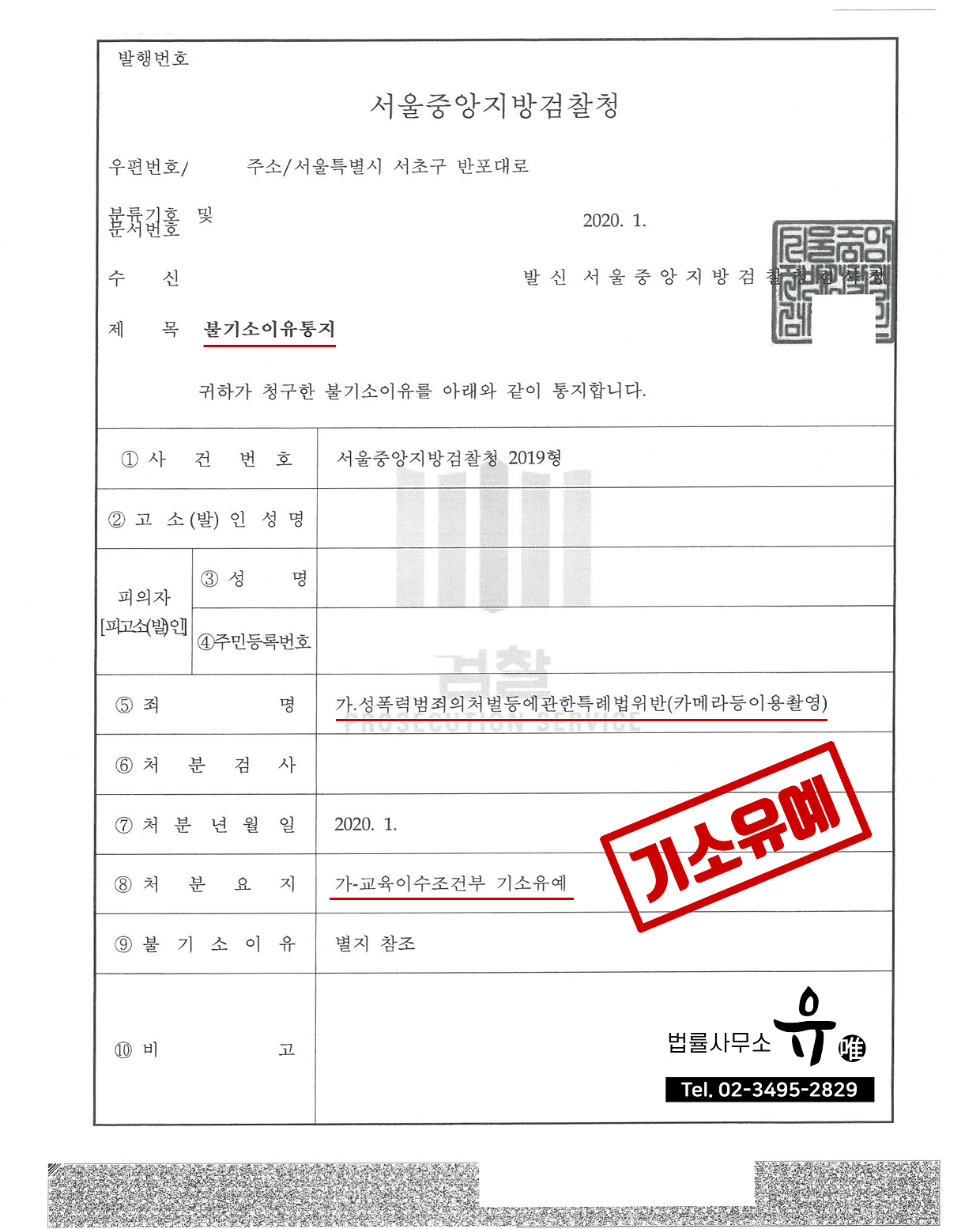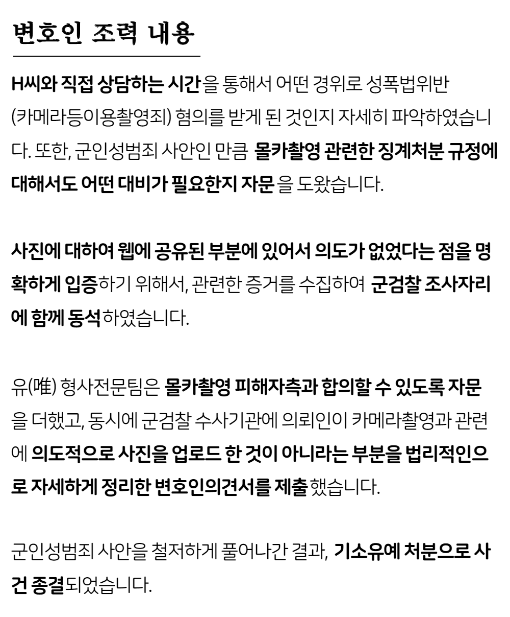 법무법인 가온길 장진우 변호사 몰카 관련 성공사례 소개 카메라로 촬영(화장실 몰카), 기소중단