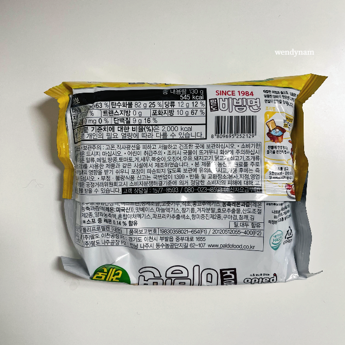 팔도 비빔면 레몬 130g 545kcal 가격 3,580원(4개)