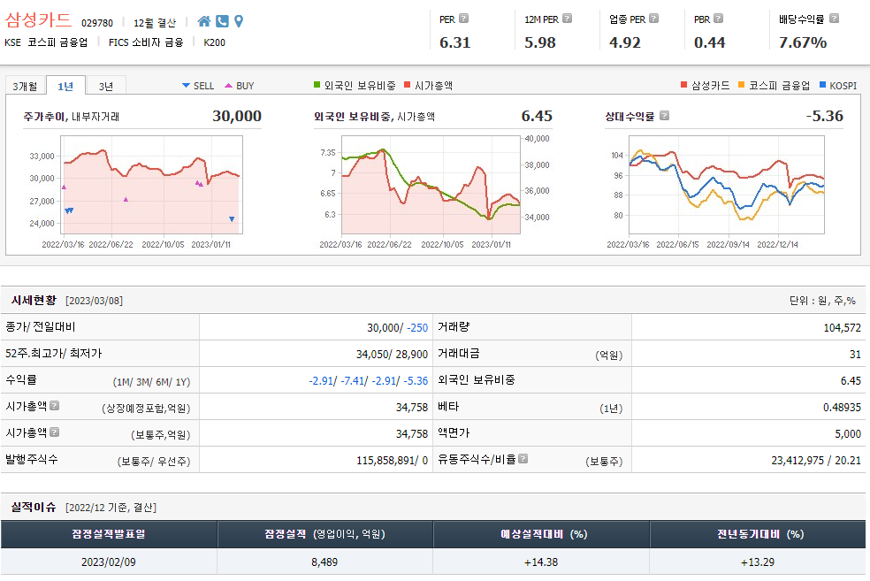 삼성카드 주가 전망, 목표주가, 기업정보에 대해 설명하는 글입니다. 주식을 보기 전에 회사의 주가와 재무 정보를 조사하는 것이 매우 중요합니다. 상위 삼성카드 주식현황과 투자정보를 살펴보고 현재 시장 상황은 어떤지 알아보도록 하겠습니다.