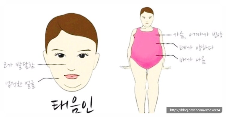 4대 체격 중 태이민은 한국인의 50% 이상을 차지한다. 태음여인은 네 마리 코끼리 중 뼈가 가장 좋고 몸집이 크고 통통한 것이 특징이다. 배가 튀어나오고 허리가 자주 두꺼우며 하체가 탄탄하다. 태음인은 식욕이 좋아서 살이 자주 찐다. 하체는 살이 찌기 쉬운 부위이기 때문에 남들보다 살이 찌기 쉽고, 잘 조절해야 합니다. 매일 스트레칭이나 반신욕으로 하체 순환을 탄탄하게 하는 것이 좋다. 동그란 얼굴, 섬세한 눈과 코, 도톰한 입술, 대충 또렷한 이목구비를 가지고 있다.