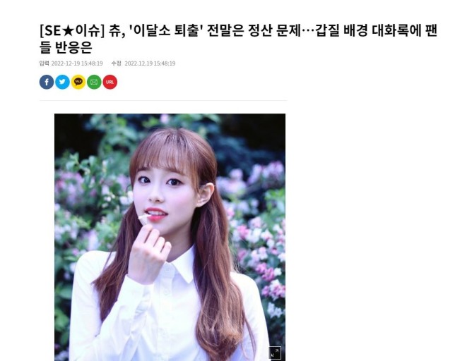 이달의 소녀 츄가 소속사 블록베리에서 퇴출당해 부당한 대우를 받았다는 의혹이 제기됐다. 최근 소속사와의 계약이 무산되면서 그 과정이 길어질 것으로 보인다.