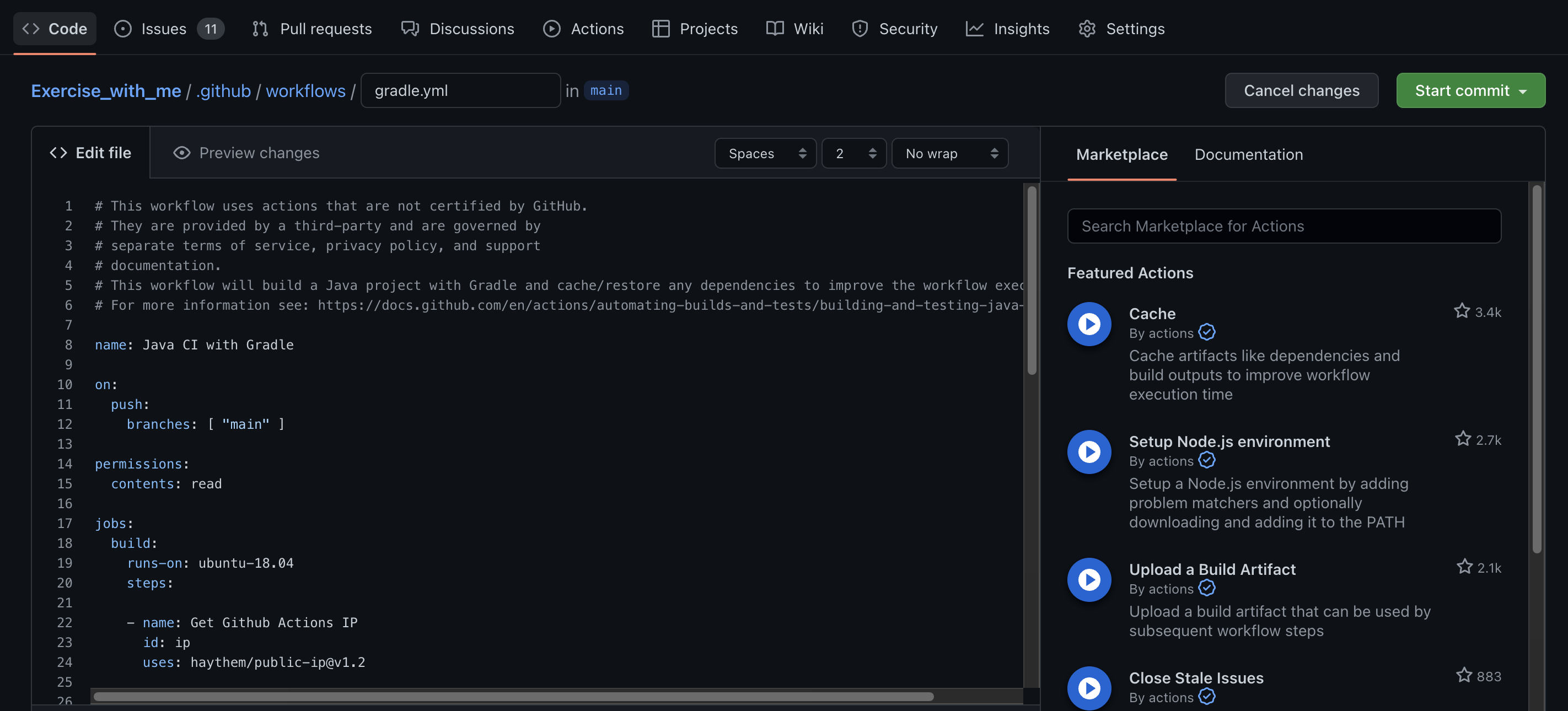 - 관련 저장소를 입력하고 Action → Java with Gradle → Configure 클릭