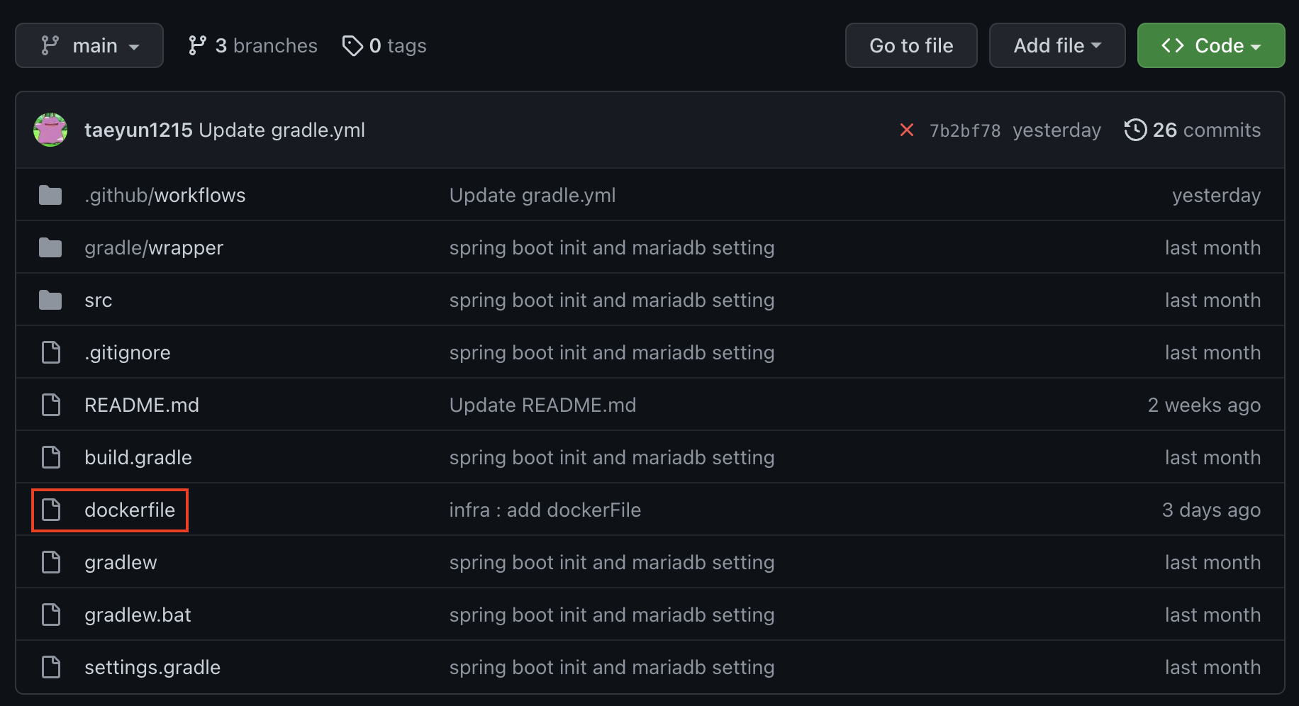 2. Dockerfile을 생성합니다. → 이 파일의 최상위 루트 디렉터리에 파일을 만듭니다.